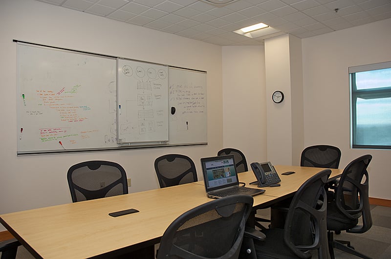 Engaged primarily by the ASRT’s Information Services Department, this team room’s principal feature is a 72-inch “smart board” used for real-time IT programming and design, web conferencing and meetings with external vendors. This mid-sized conference room seats 10 and has a west-facing city view.